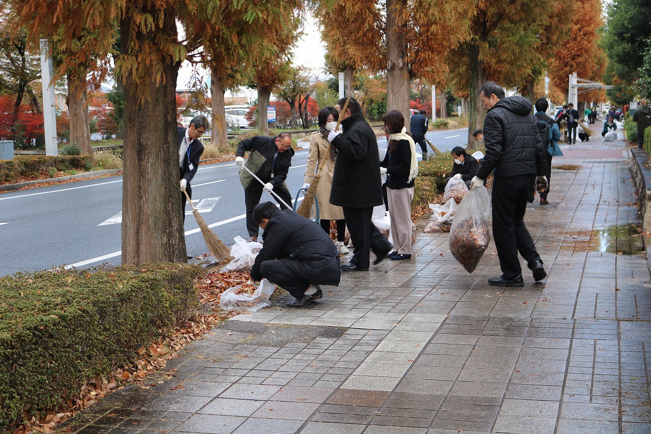 ソフトピアジャパン周辺の一斉清掃を行いました。 令和7年11月26日(水)8:00〜9:00に、ソフトピアジャパン周辺の一斉清掃を行いました。 当日は、ソフトピアエリア内の企業・団体にお勤めの皆さまにご参加いただき、 各社の建物周辺を中心に、落ち葉やゴミの回収などの清掃活動を行いました。 朝のお忙しい時間にもかかわらず、ご参加くださった皆さま、本当にありがとうございました。 ソフトピアジャパンでは、今後もこのような取り組みを通じて、地域に根ざした活動を続けてまいります。 一斉清掃の様子