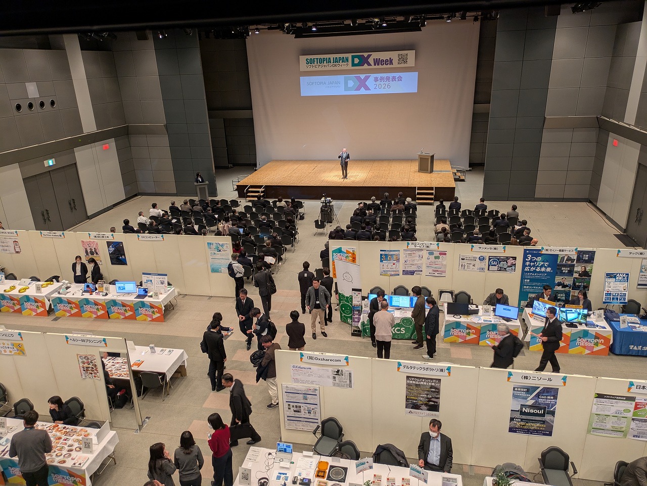 「SOFTOPIA JAPAN DX Week」を開催しました。 2026年2月18日(水)~20日(金)に、ソフトピアジャパンにて「SOFTOPIA JAPAN DX Week」を開催しました。 期間中は、DXに関する発表会や展示会などを実施しました。ご来場・ご参加いただいた皆さま、ありがとうございました。